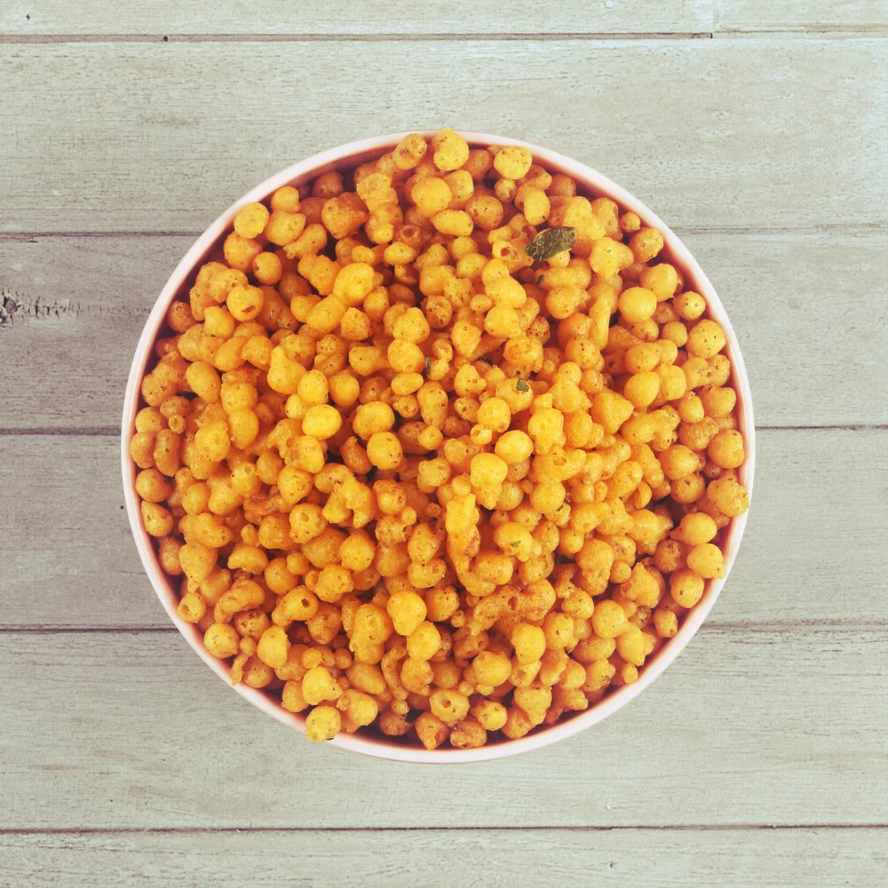 Charkhi Boondi boasts a delightful taste that perfectly balances crispiness and flavor. Each tiny, golden pearl is seasoned with aromatic spices, creating a savory explosion in every bite. Their light and airy texture makes them a joy to munch on, whether enjoyed on their own or as a topping for raitas and chaats. Experience the exquisite blend of taste and crunch that elevates any dish they accompany!